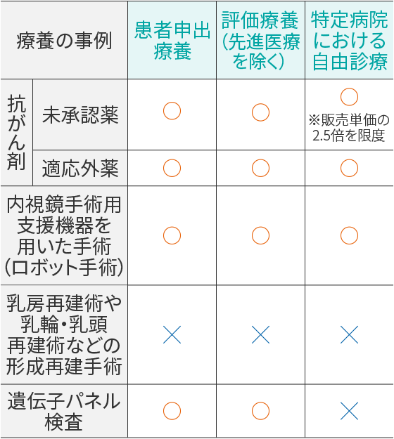 ※先進医療、評価療養、患者申出療養についての最新の情報は厚生労働省のホームページをご参照ください。
