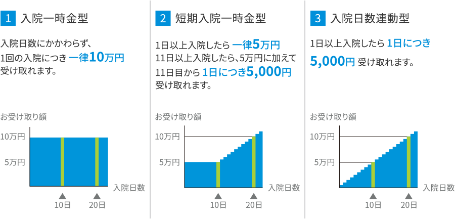 - 保険契約のそれぞれの「1回の入院とは?」をご確認ください。