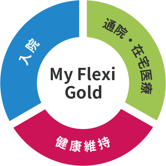 「マイ フレキシィ ゴールド」は、病気やケガへの保障を、あなたに合わせてデザインできる医療保険です。