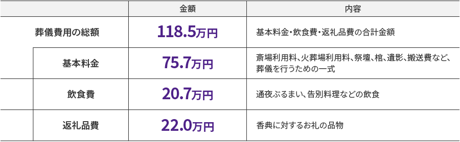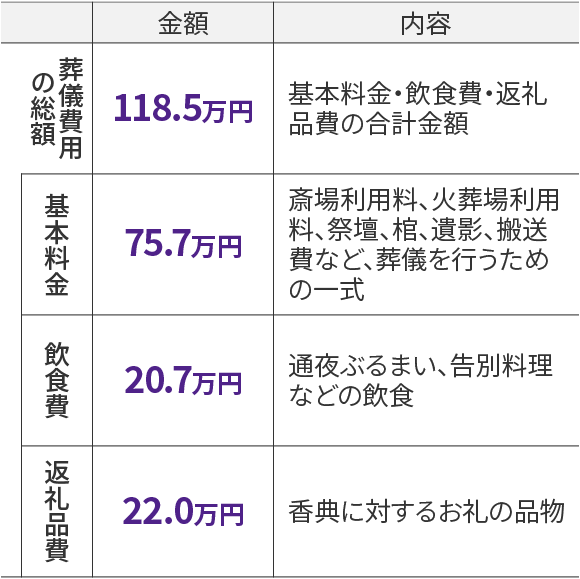 葬儀費用には、飲食費や返礼品費も含まれます。