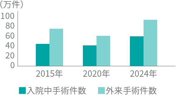 入院中の手術と比べて、外来手術の件数が多くなっています。