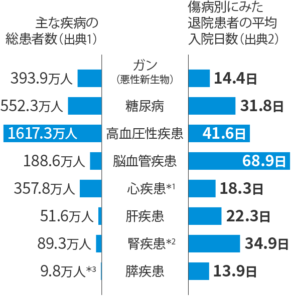 脳血管疾患など特定の病気は入院日数が比較的長くなる傾向にあります。