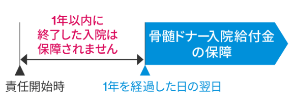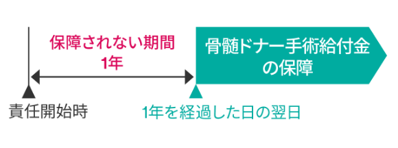 この特約の骨髄ドナー手術給付金の保障は、責任開始時の属する日からその日を含めて1年を経過した日の翌日から保障を開始します(1年間の保障されない期間があります)。