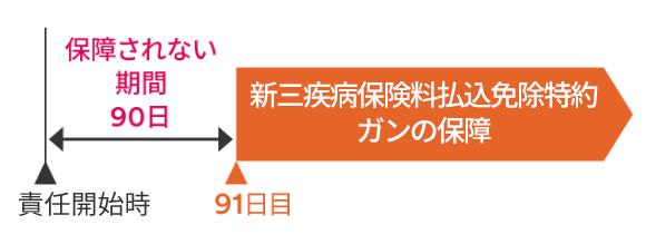 この特約のガンの保障は、この特約の責任開始時の属する日からその日を含めて91日目(ガン責任開始日)から保障を開始します(90日間の保障されない期間があります)。